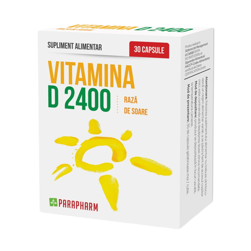 Vitamina D 2400 este un supliment alimentar esențial pentru menținerea sănătății generale, în special în timpul iernii când expunerea la soare este redusă și sinteza naturală a vitaminei D în piele este insuficientă. Vitamina D 2400 este ideală pentru a asigura un aport adecvat de vitamina D, esențială pentru sănătatea oaselor, funcționarea normală a sistemului muscular și imunitar, precum și pentru menținerea sănătății dinților și protecția celulară împotriva stresului oxidativ.